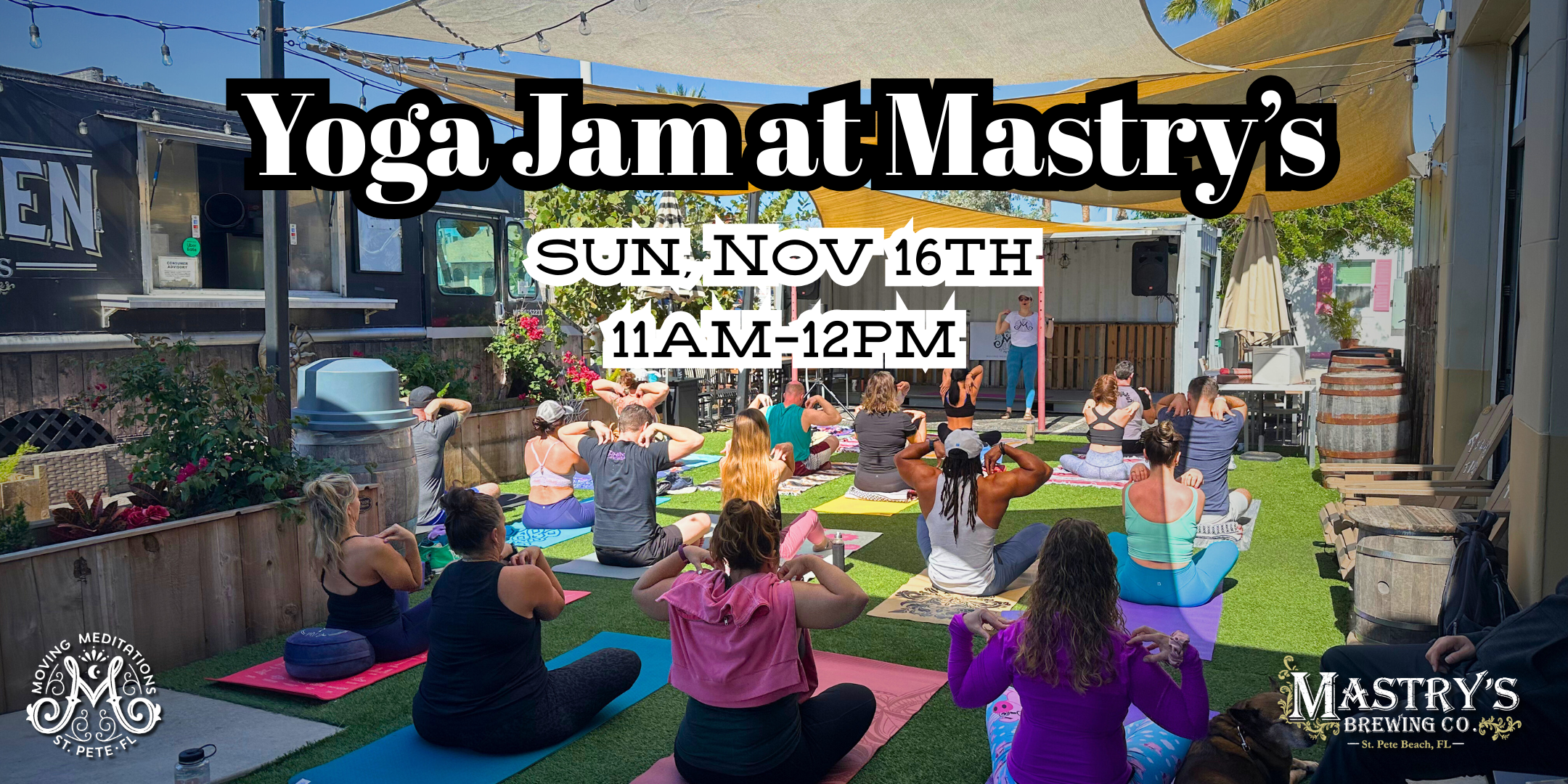 Join teacher Rissa Wray and live music with DJ Pat Keane for an extra special yoga jam in the lovely outdoor yoga space at Mastry's Brewery, Sunday, November 16th from 11am-12pm. Bring your own yoga mat, towel, or blanket and meet us at Mastry's for a well-rounded yoga class featuring Hatha Yoga, Thai Yoga, and Mobility techniques at an easygoing pace. Admission includes one complimentary beverage from the tap (select wine, beer, or kombucha)!